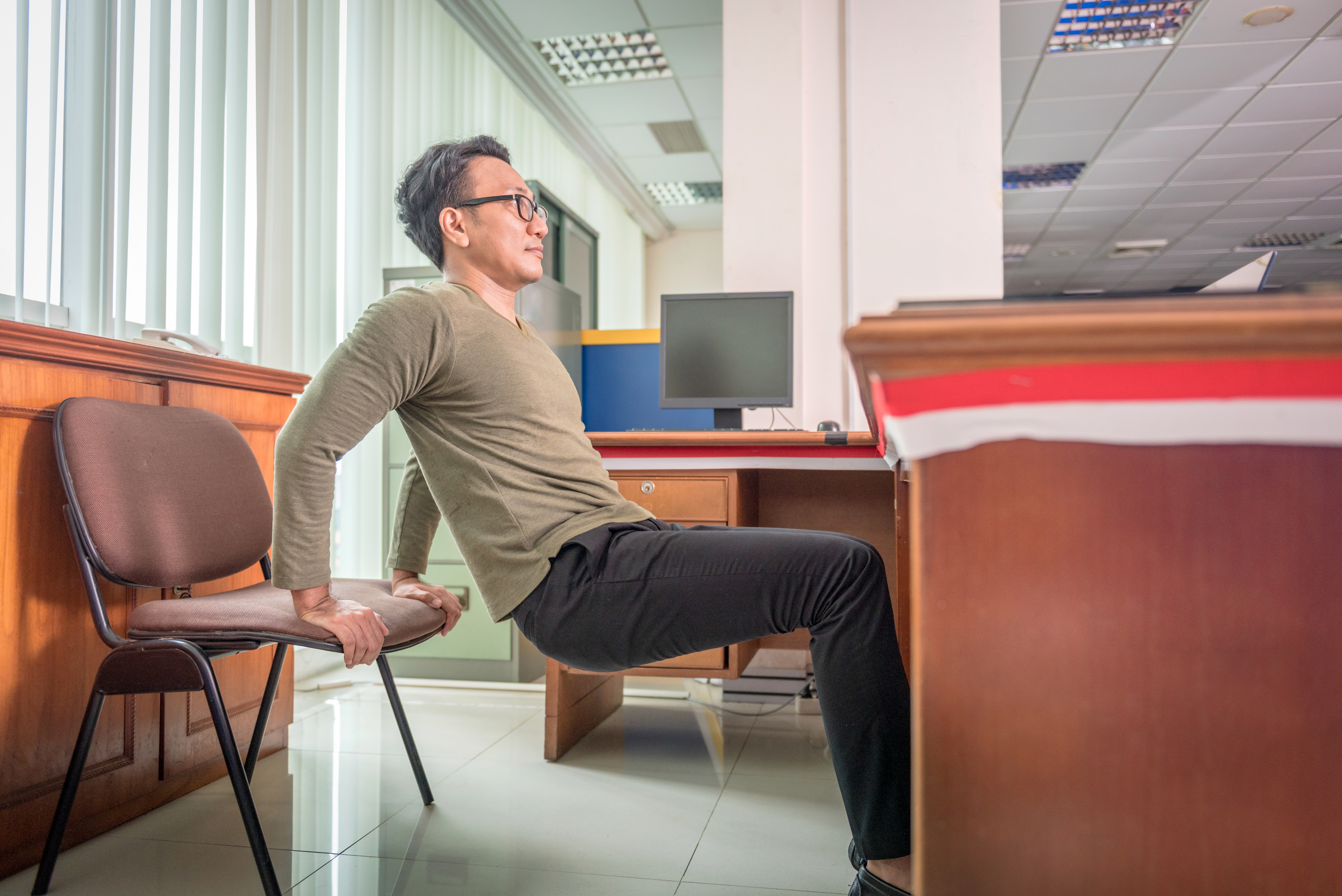 These moves will work your upper body, lower body and core—all you need is an office chair
